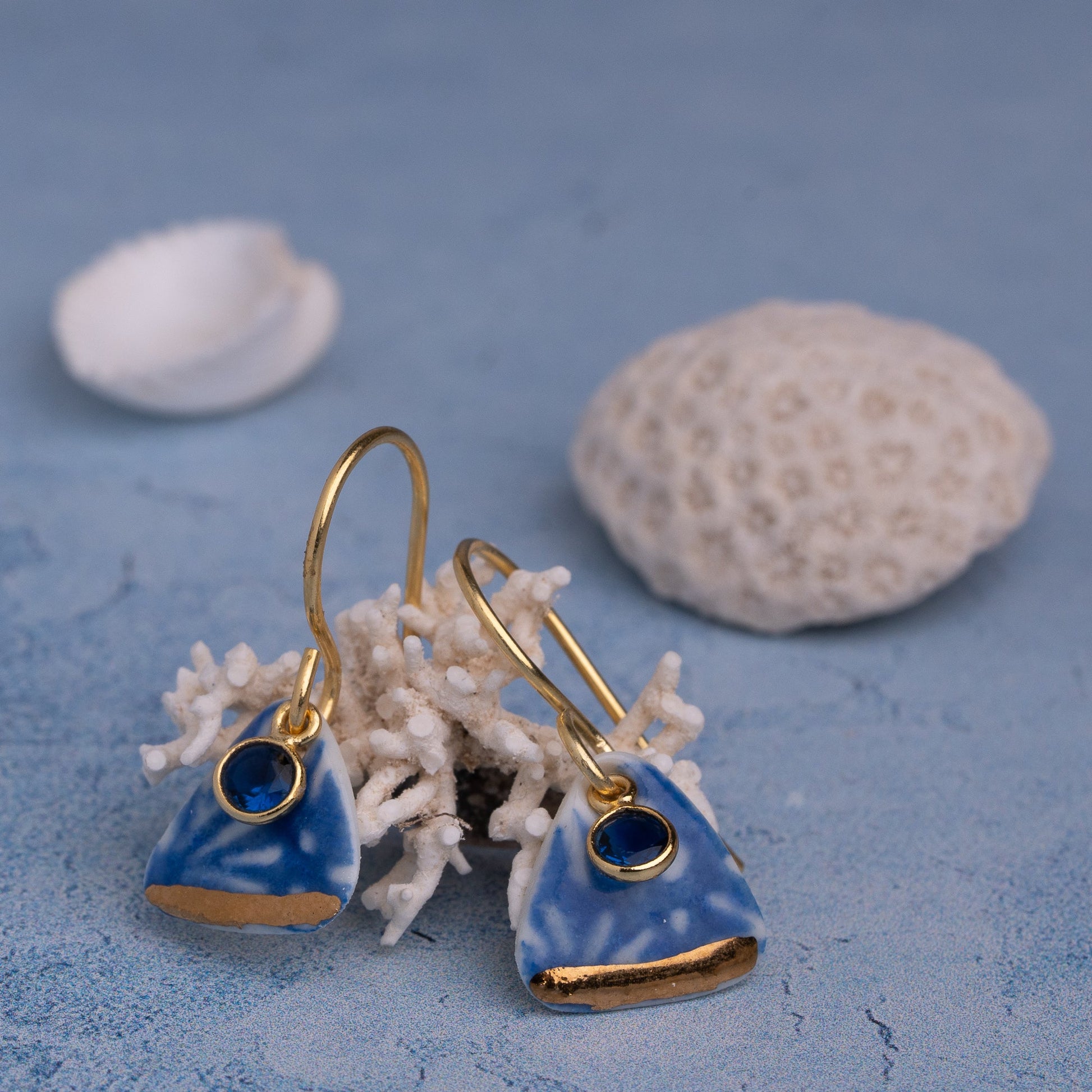 Each piece in our Porcelain Jewelry Collection is a work of art, crafted by hand, touched by fire, and inspired by the living beauty of coral reefs. Individually rolled, pressed, and shaped, every porcelain element goes through three separate firings, the final layer featuring luminous 18k gold lustre. Completed with gemstones and high-quality 18k gold-overlay earring wires (2-micron thickness, crafted to last), no two pieces are alike. Lightweight yet enduring, each unique piece captures the essence of ocean elegance. Designed not just to be worn, but treasured.