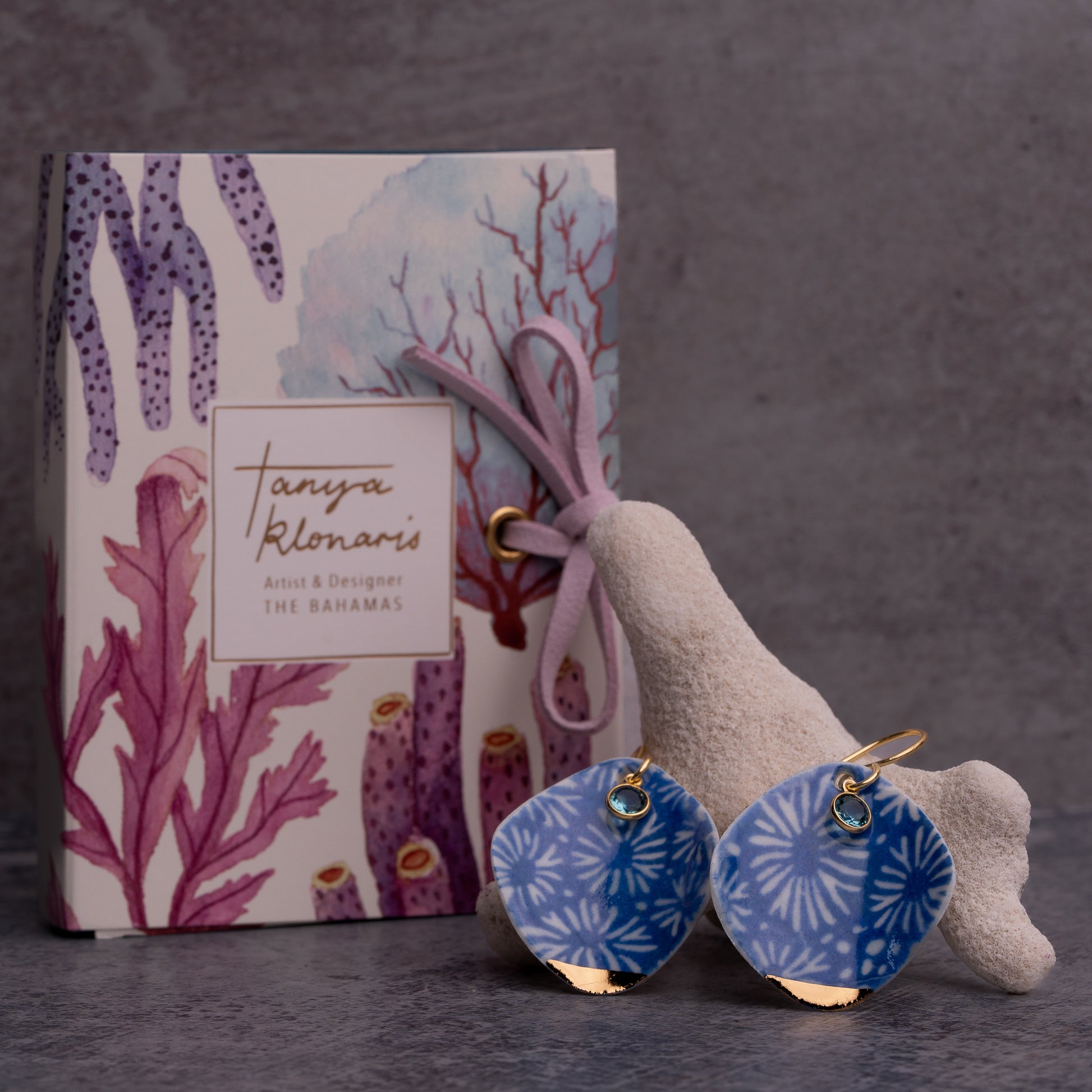 Each piece in our Porcelain Jewelry Collection is a work of art, crafted by hand, touched by fire, and inspired by the living beauty of coral reefs. Individually rolled, pressed, and shaped, every porcelain element goes through three separate firings, the final layer featuring luminous 18k gold lustre. Completed with gemstones and high-quality 18k gold-overlay earring wires (2-micron thickness, crafted to last), no two pieces are alike. Lightweight yet enduring, each unique piece captures the essence of ocean elegance. Designed not just to be worn, but treasured.