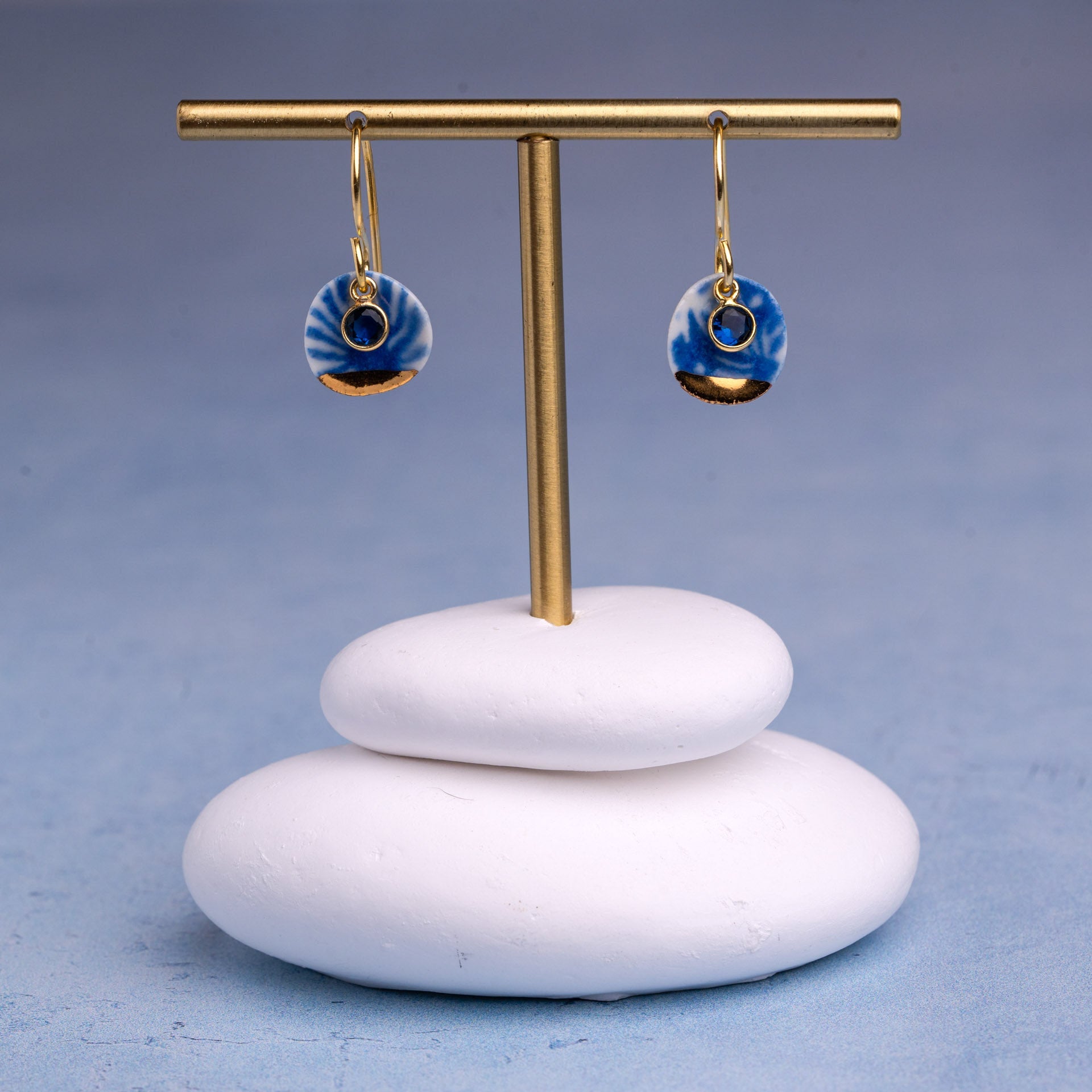 Porcelain Earrings, Small Round, Cobalt Blue