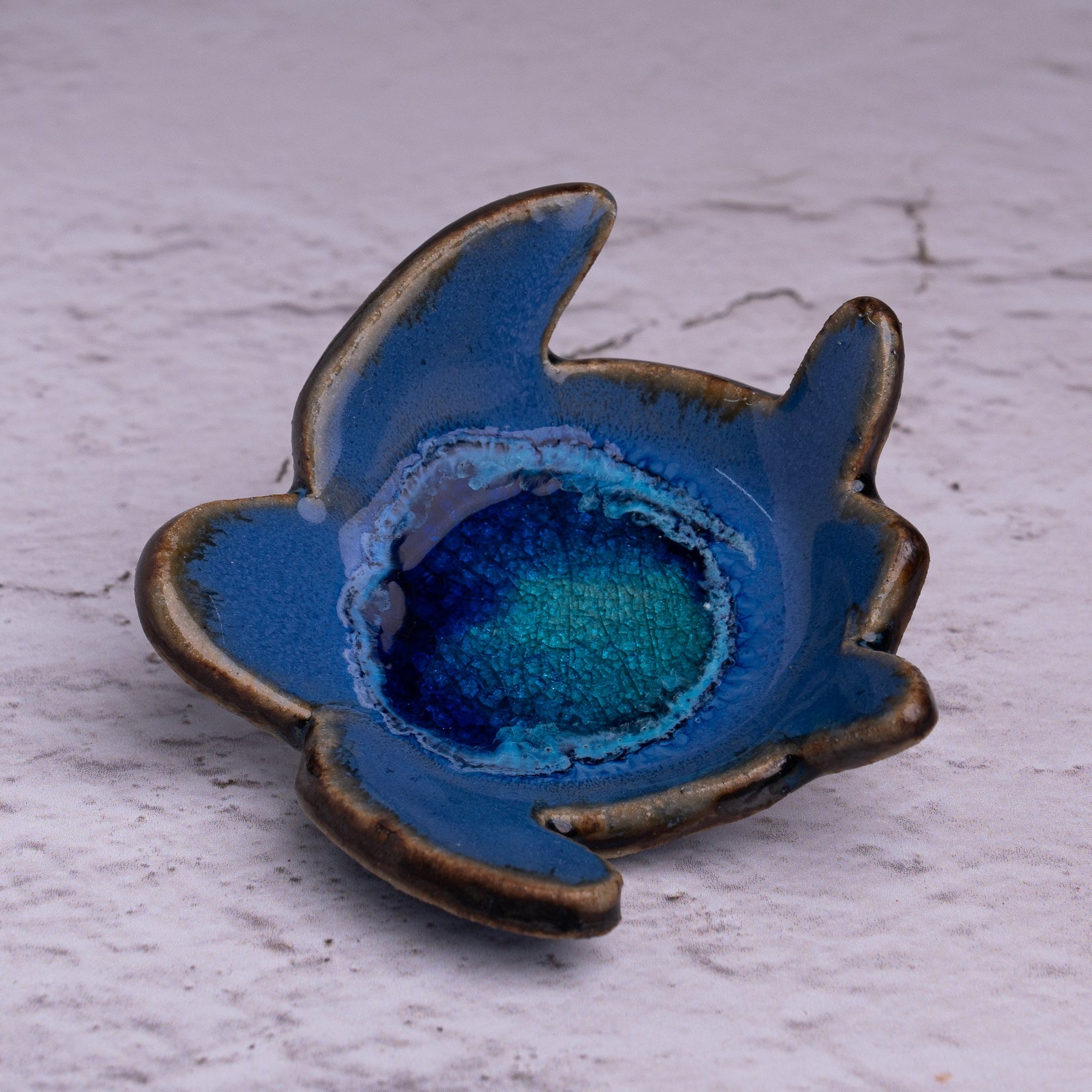 Our Turtle dishes are handcrafted and decorated with glass, painted with our deep sea blue glaze. They are so adorable and perfect for soaps, jewelry, or your treasured keepsakes.